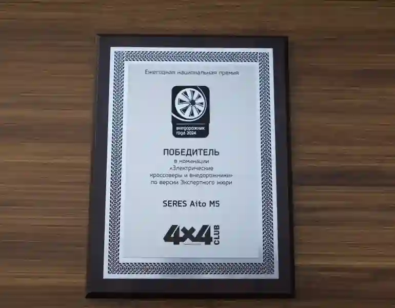 AITO SERES M5 стал победителем премии «Внедорожник года» по версии журнала «Клуб 4х4» в номинации «Электрические и гибридные кроссоверы»